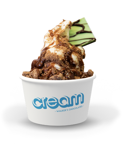 Mint Chocolate Sauce, Chocolate Crumble, whip Cream, chocolate sprinkles, Hostess Mint