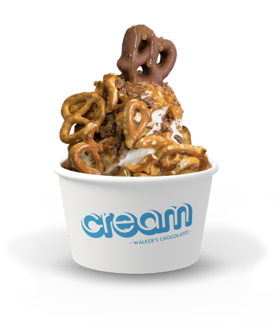 caramel, buttercrunch, coconut, whip cream and chocolate sprinkles, chocolate curl