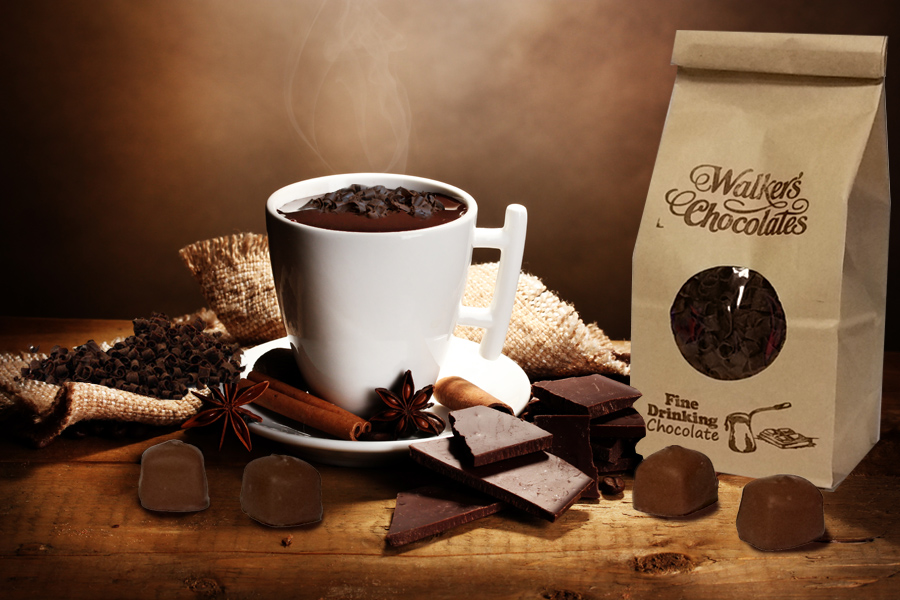Pour 1 cup of boiled milk over 5 tablespoons of Walker’s Chocolate drinking chocolate.