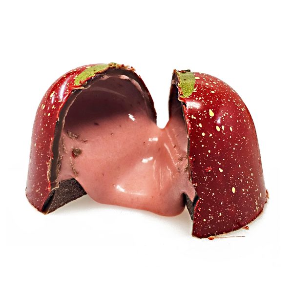 INGREDIENTS: Sugar, milk, cocoa butter, chocolate liquor, heavy cream, glucose, soy lecithin, vanilla,salt, Strawberry Puree, concentrated natural champagne flavour.