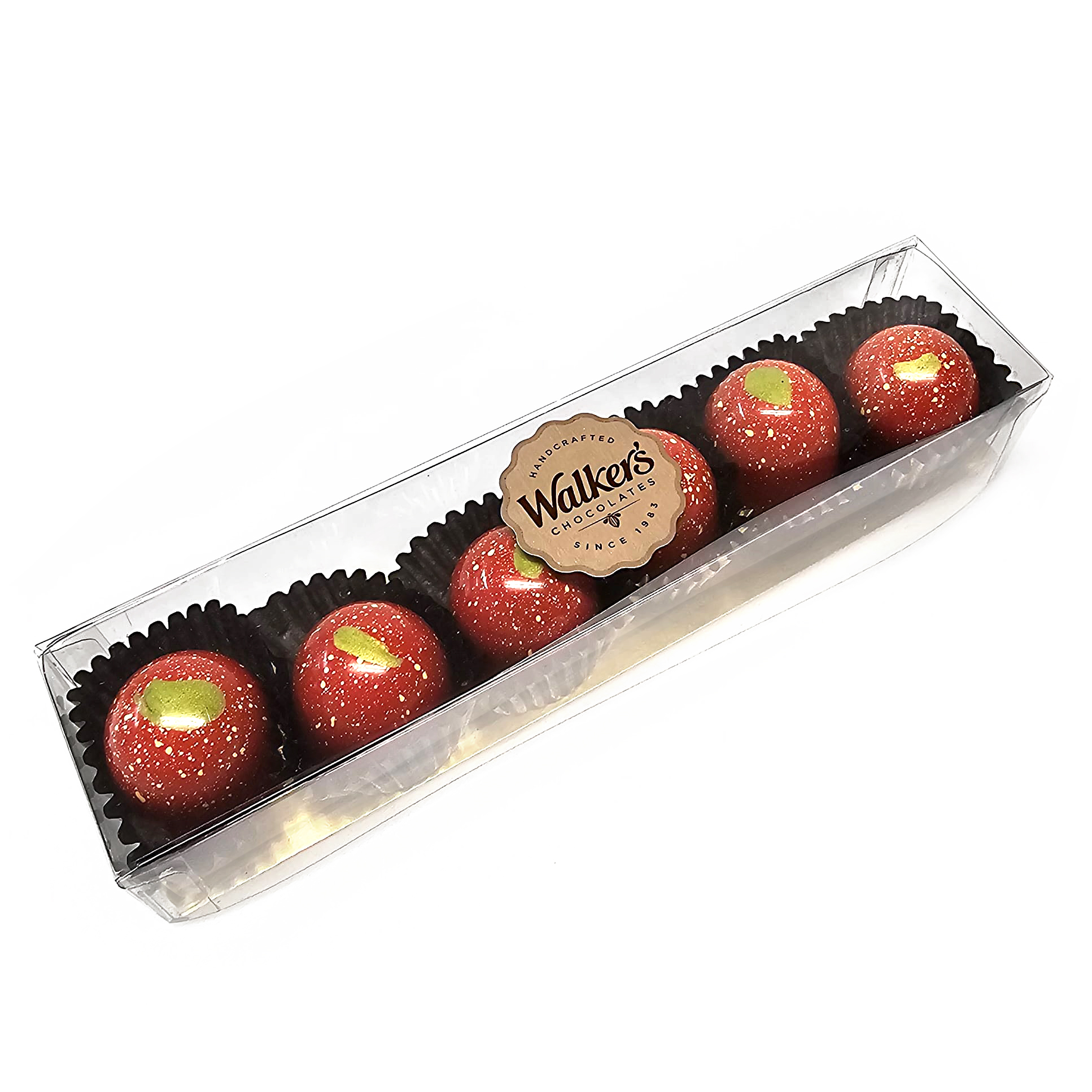 6 milk chocolate hand painted bon bons made with real strawberries.