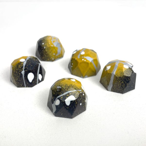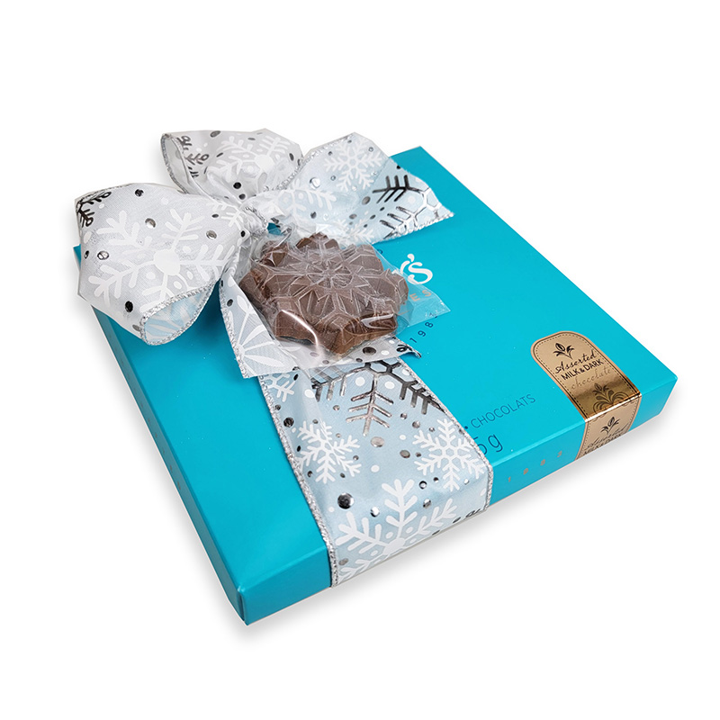 INGREDIENTS: Chocolate (chocolate liquor, cocoa butter, sugar, milk solids), invert sugar, butter, coconut oil, almonds, brazil nuts, hazelnuts, pecans, blueberries, egg whites, invertase, salt, citric acid, soy lecithin, natural and artificial flavour and colour.