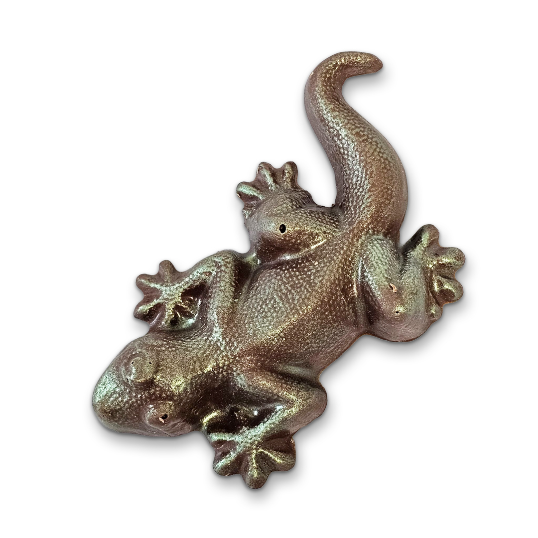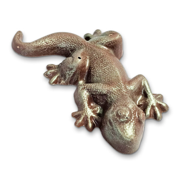 Milk chocolate gecko, with green lustre dust coating.
