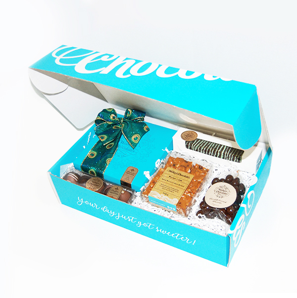 Assorted chocolate (chocolate liquor, cocoa butter, sugar, milk solids), invert sugar, butter, coconut oil, almonds, brazil nuts, hazelnuts, peanuts, pecans, blueberries, egg whites, invertase, salt, citric acid, soy lecithin, natural and artificial flavour and colour.