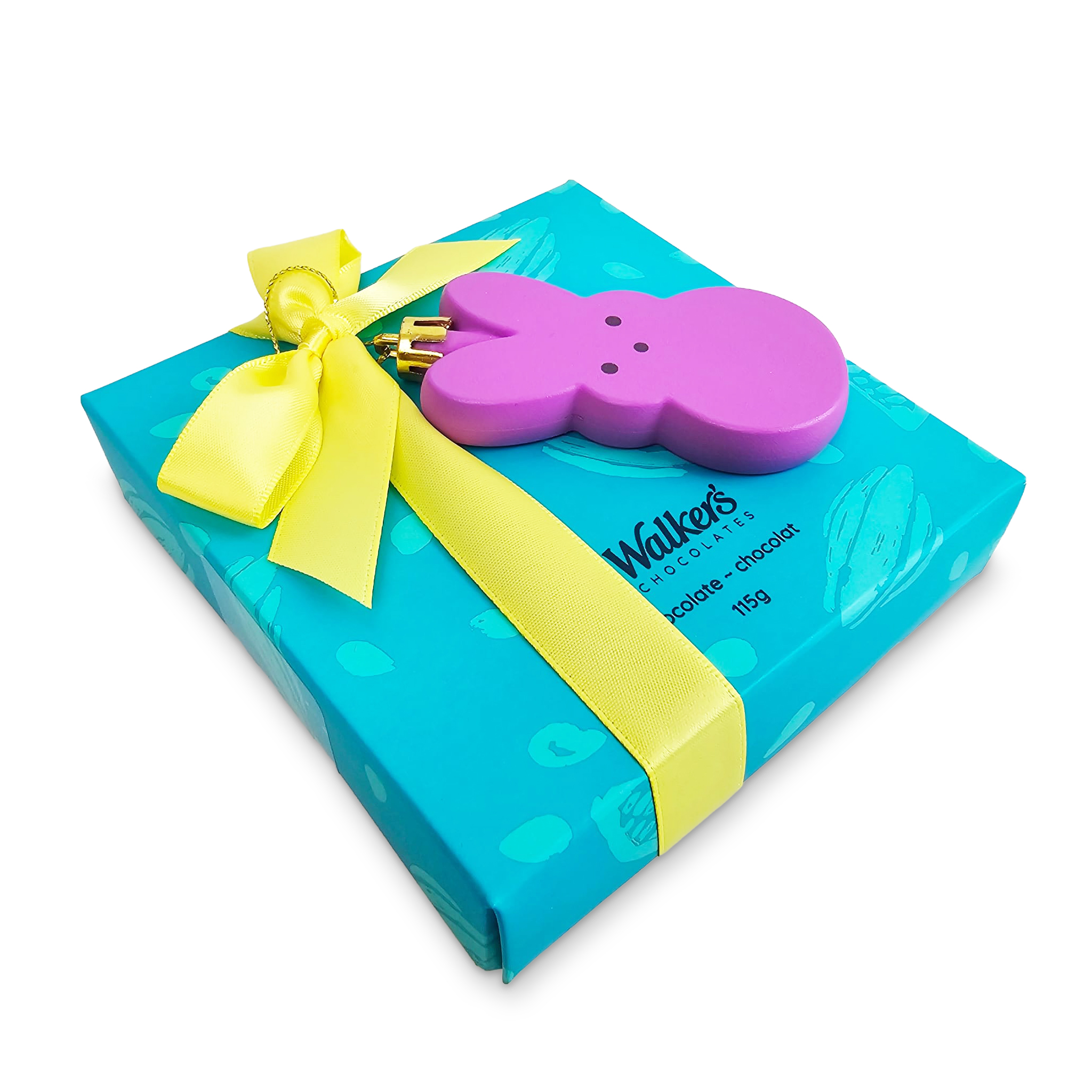 A mouth-watering assortment of milk and dark chocolates, creamy caramels, melt in your mouth mint meltaways, nut clusters and exquisite cream centres. With Easter ribbon and a bunny decoration.