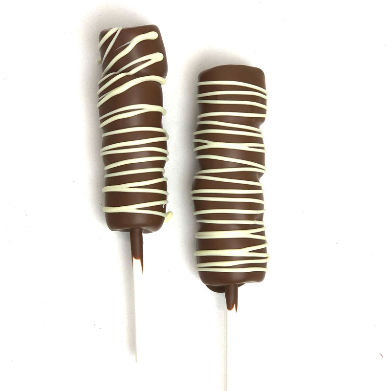 Heavenly marshmallows covered in rich milk chocolate and drizzled with white chocolate