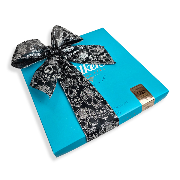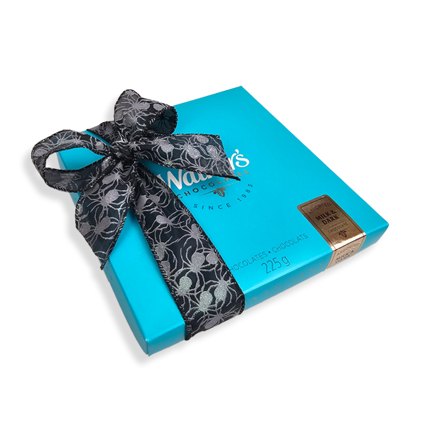 A mouth-watering assortment of milk and dark chocolates, creamy caramels, melt in your mouth mint meltaways, nut clusters and exquisite cream centres. Decorated with Halloween ribbon.